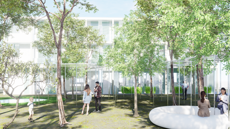The NUDes add-ons range from miniature forests that can be added onto roofs, to origami-inspired structures that can be attached to existing facades and serve as vertical urban farms, enabling people to produce their own food. Each is designed to be built according to the sustainable standards of the circular economy, following modularity and prefabrication methods.